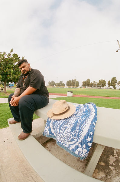 Andres, raised in Los Angeles, is a traveler, a tourist, a person on the move, but always centering his movement on the goal of assisting others. His therapeutic practice and music practice are reflections of these ideals. His “therapy office” is always moving, shifting between Inglewood parks, coffee shops, chess boards, and healing circles—like a true guerilla fighter, keeping the institution on their toes and always having fresh air in their lungs. A practice that isn’t just romantic to practice but has a true impact on his conversations. As FYPC photographed Andres in his city, and the park he takes his clients to, our photographer shared that Andres worked a little of his magic during the photoshoot—our photographer shared: “It was funny, I didn’t realize that this was a low-key therapy session! I was moving my feet, feeling the grass under my hands, really feeling the LA sun on my back—I didn’t notice how much I was opening myself up to Andres as we walked and talked. [LAUGHS]” It wasn’t institutional, it was about feeling safe to open up, hearing your language come out of someone else's mouth, letting your muscles move and unlock a memory that sat between your triceps/biceps/brain-lobes/other-muscles-that-we-don't-work-out.